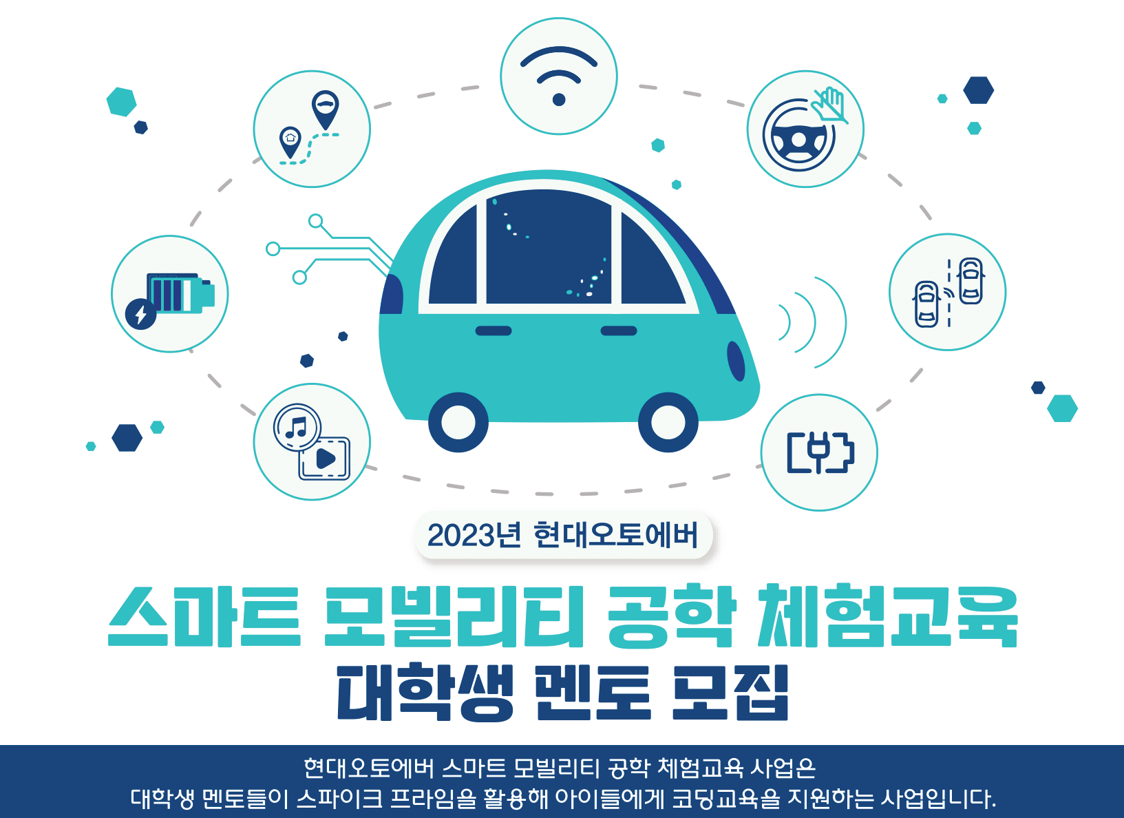 “2023년의 여름이 아이들의 길을 밝혀주는 하나의 등불이 될 수 있도록 현대오토에버 스마트모빌리티 공학체험교육의 멘토이자 멘티로서 최선을 다해 임하도록 하겠습니다!”